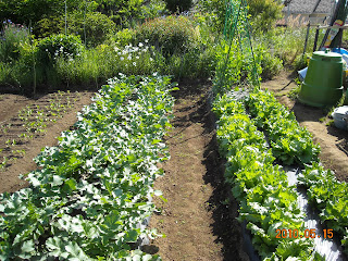 今日は雨の予報、エンドウは今日収穫しないと時期遅れとなってしまうので朝早く収穫に行きました。途中で雨が降ってきたので今日は来週配布予定のダイコン畝しか撮れませんでした。この写真はA区画で手前から、ダイコン、ゴボウ、ニンジン、スイートコーン・エダマメの畝が続き、ネットはハモノ畝です。ハモノ畝の間にはブロッコリー苗が見えます。今年はスイートコーンとエダマメを交互に植えて害虫防止と収穫量増大を狙う、コンパニオンプランツに挑戦しています。うまくゆけば他の栽培にも適用していきます。特にキャベツはアオムシとの戦いなのでレタスとの組み合わせを今秋は試そうと考えています。